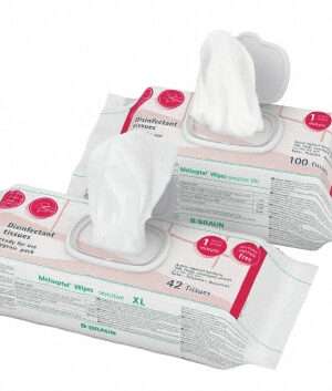 - Gebrauchsfertige, alkoholische (17%) Desinfektionstücher zur Schnelldesinfektion