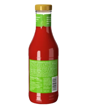 Zutaten: 58% Tomatenmark, Wasser, Süßungsmittel: 14,6% Erythrit; Branntweinessig, modifizierte Stärke, Speisesalz, Gewürze.